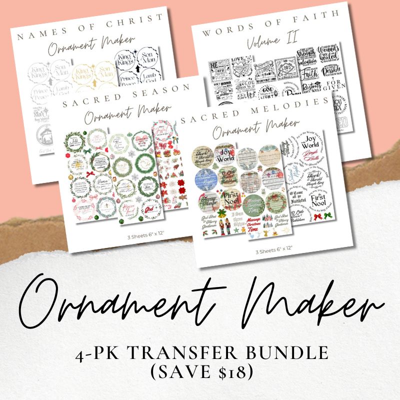 Not every ornament tells a story… but yours can tell His. This all-in-one bundle gives you our most-loved Christmas rub-on transfer sets—each filled with Scripture, hymns, & designs—to create ornaments that don’t just decorate a tree, but declare the Good News.