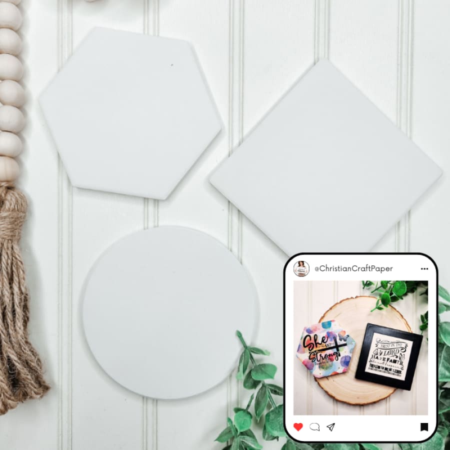 These coaster tiles are primed to become something beautiful to protect any side table, night stand, or coffee table. Also makes stunning shelf sitters or tier tray craft project.