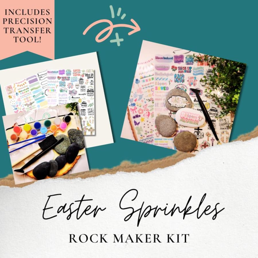 Sprinkle joy, scripture, and creativity with our best-selling Easter Sprinkle Stones kit. This all-in-one set includes premium rub-on transfers with uplifting Easter verses, ready-to-craft stones, and the tools you need to make inspiring gifts or decorations. Perfect for families, VBS, Sunday school, or crafting alone with God.