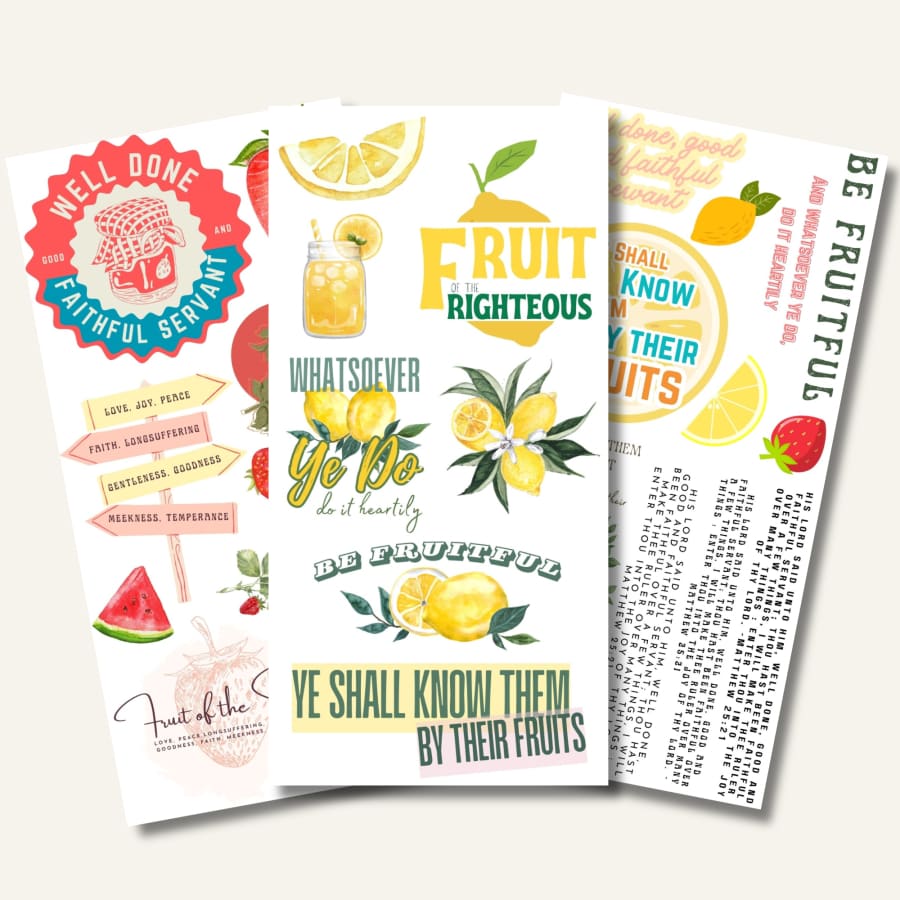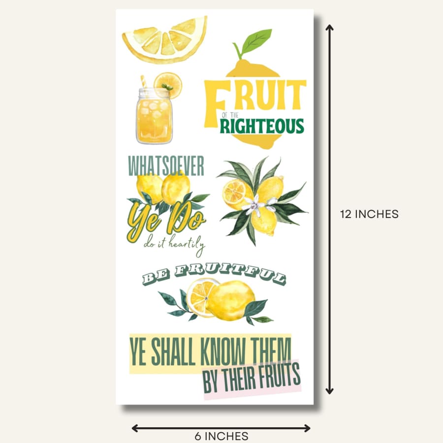 Introducing "Fruitful Servant" premium rub-on transfers. Designed with faith and creativity in mind, this stunning set features verses about service & being fruitful with lemon & strawberry designs to inspire your next project.