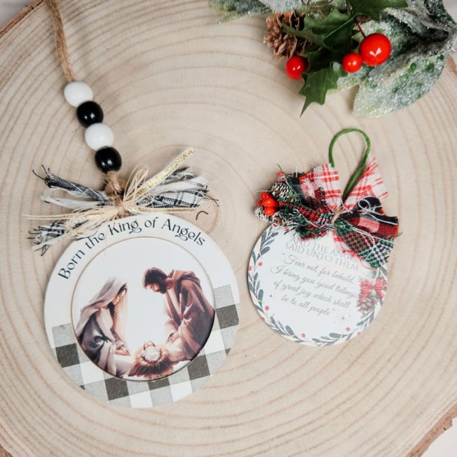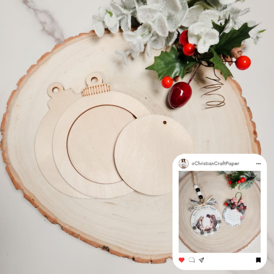 Each order contains one back, one topper, and one 3" round (makes 2 ornaments total) Ornaments are approximately 4" and are raw birch.