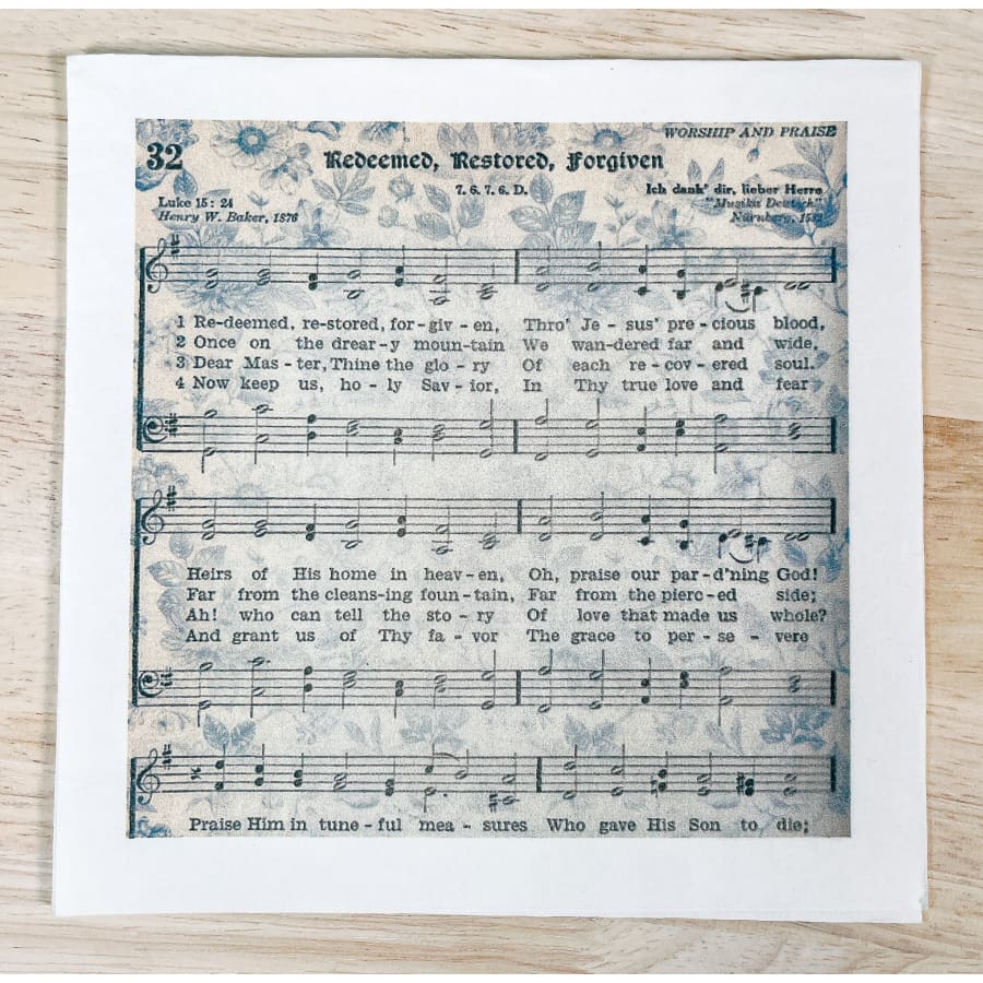 Bring the reminder of this beloved hymn your next project with our "Redeemed" Christian Paper Decoupage Napkin!