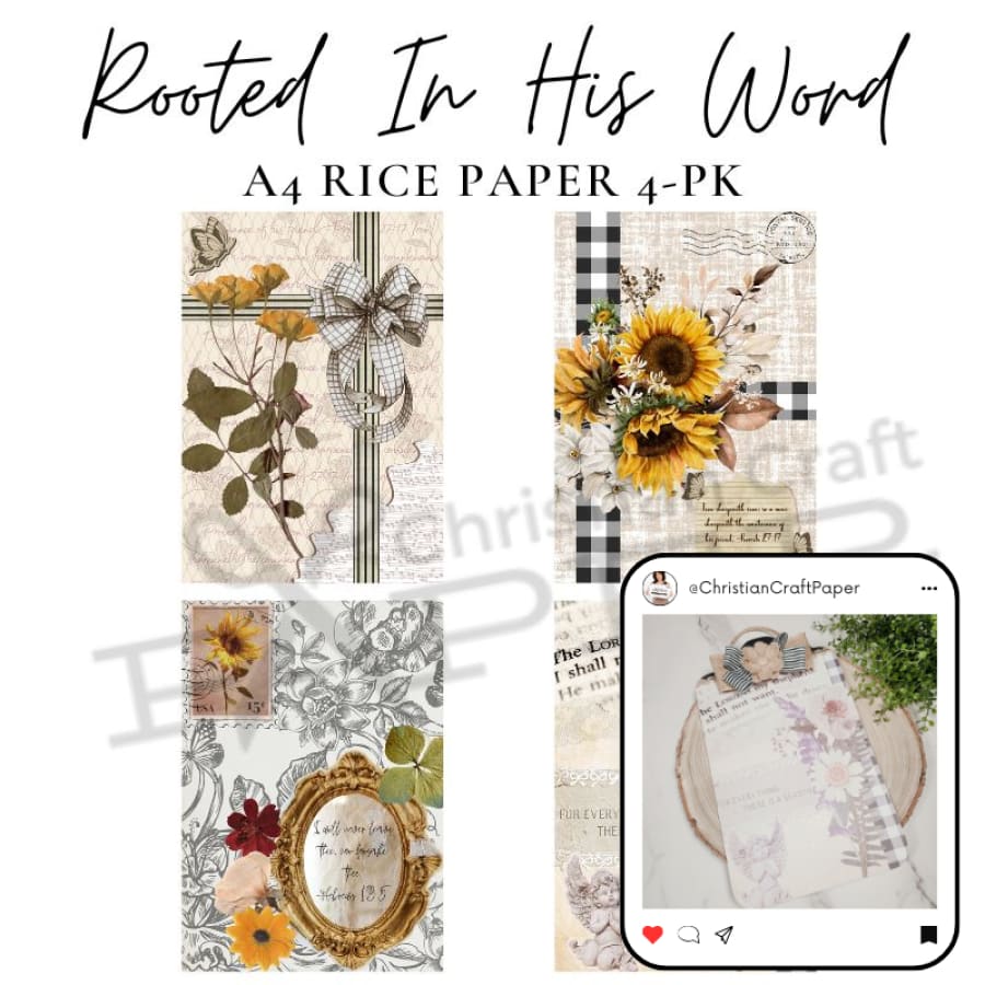 Start your next DIY decoupage craft project today with our Rooted In His Word A4 Rice Paper sheets and create something meaningful!