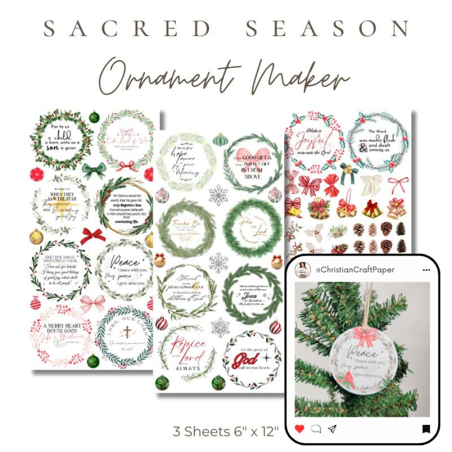 Celebrate the beauty of the seasons and the power of Scripture with our Sacred Seasons Ornament Maker Transfers. This collection includes elegant rub-on designs with winter greenery, subtle Christmas elements, and Bible verses that make every ornament a meaningful creation. Use them on wood slices, tags, or glass to create unforgettable handmade gifts.