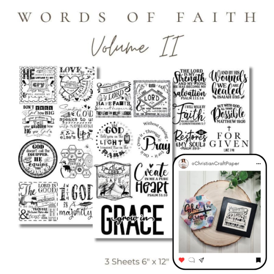 Generous Collection: Each package contains a variety of transfer sheets, each featuring a unique verse or word art design. With "Words Of Faith," you'll have an extensive toolkit of faith-inspired elements to infuse your projects with purpose and meaning.